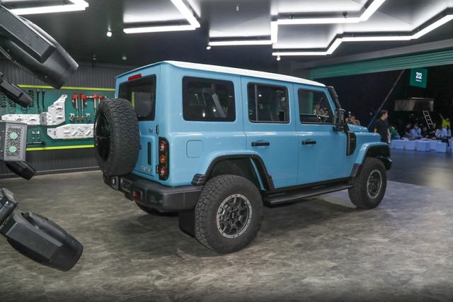 212 T01长风版在外观方面,还是比较硬核狂野的,典型的硬派SUV,大灯组采用圆形设计,这也是很多硬派SUV都在用的设计元素,大灯两侧的小黄灯也是比较经典,复古,机器盖的凸起也是比较高,力量感十足,整体设计,符合自身的定位。 212 T01长风版采用方盒子造型,突出一些平直的线条,侧踏板采用固定式,全地形轮胎和防脱圈轮毂也是标配,车尾的后挂式备胎也采用全尺寸,轮胎的尺寸达到了285/70 R17,车身尺寸方面,长宽高分别为4749x1945x1999毫米,轴距为2860毫米。 212 T01长风版的机械感还是比较足的,中控屏幕下方还提供大量实体按键,比较实用,全液晶仪表的尺寸为10.25英寸,中控屏幕的尺寸为12.3英寸,换挡机构采用电子式,整体设计和用料还是比较粗犷的。 动力部分,212 T01长风版搭载代号为N20TG的2.0T涡轮增压发动机,发动机达到了252马力,最大扭矩为410牛米,传动系统为8挡手自一体变速箱,分时四驱和三把差速锁为标配,WLTC综合油耗为11.3L。 |